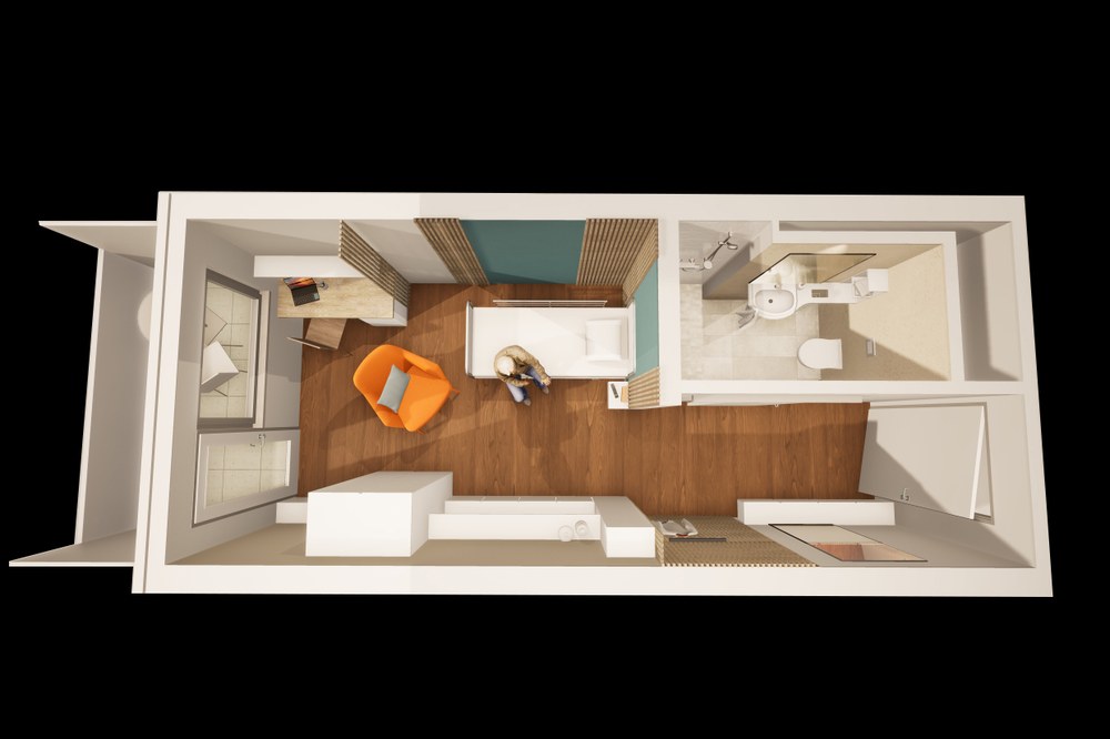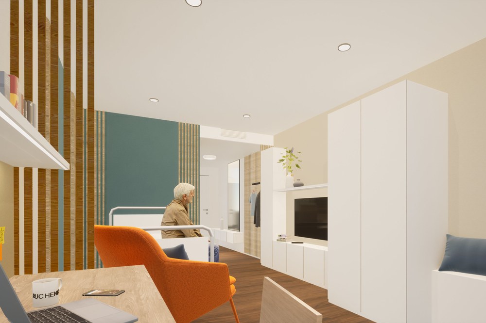 Die Modernisierung der Bettenzimmer soll nicht nur einen Hotelcharakter widerspiegeln und ein angenehmes Wohngefühl schaffen, sondern auch eine Flexibilität für der Pflege bieten.