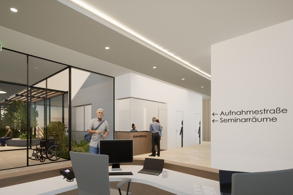 Die Erweiterung ermöglicht eine schrittweise Inbetriebnahme, sodass das Therapiezentrum während aller Bauphasen weiter nutzbar bleibt.