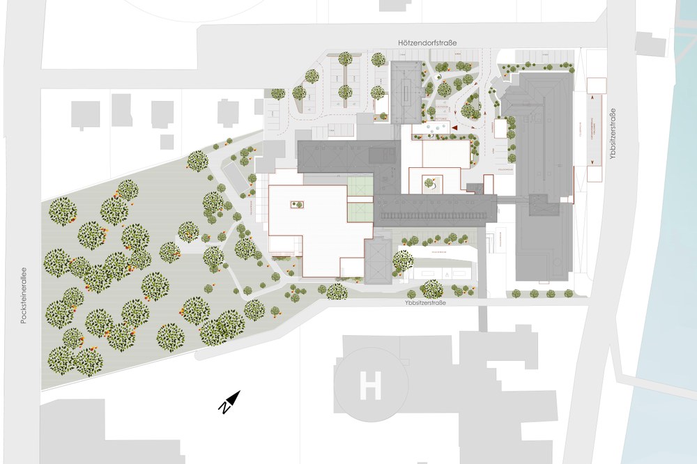 Das Projekt zur Modernisierung und Erweiterung des Therapiezentrums Buchenberg zielt auf eine zeitgemäße Neugestaltung ab, die Gesundheit, Wellness und Natur harmonisch verbindet. Neben architektonischen Optimierungen umfasst das Konzept funktionale Erweiterungen, wie eine zentrale Aufnahmestraße im Innenhof und eine Erweiterung des Speisesaalbereichs und eine Aufstockung eines Wellnesstherapie- bzw. Spa-Bereichs. Weiterer Fokus lag beim Entwurf auf der Erschaffung von kurzen Wegen und einer fließenden Trennung zwischen therapeutischen und Freizeitbereichen. Natürliche Materialien und großzügige Glasfronten fördern ein gesundheitsförderndes Umfeld.